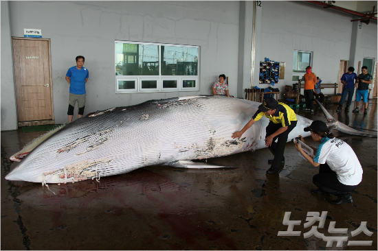 25일 오전 9시40분께 울산시 동구 앞바다에서 그물에 걸려 죽은 채 발견된 밍크고래가 4300만원에 판매됐다. (사진=울산해양경찰서 제공)