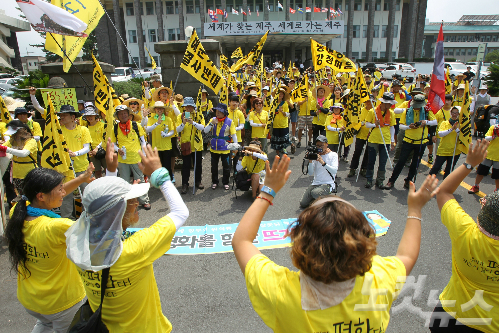 이태호 제주해군기지건설저지를위한전국대책회의 집행위원장은 "제주남방에선 한미일 해군이 미 항공모함까지 동원한 채 탐색구조훈련을 하고 있는데 그들은 과연 세월호 참사과정에서 어떤 구조를 했고 어떤 탐색을 했는지 묻고 싶다"고 목소리를 높였다.