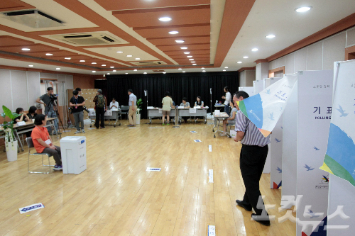 7·30 국회의원 재·보궐선거일인 30일 오전 서울 동작구 상도1동주민센터에 마련된 투표소에서 시민들이 투표를 하고 있다. (사진=박종민 기자)