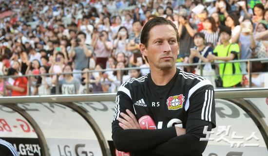 30일 오후 서울 마포 월드컵경기장에서 열린 독일 바이엘 04 레버쿠젠(이하 레버쿠젠)과 FC서울의 경기에서 레버쿠젠 로저 슈미트 감독이 그라운드를 응시하고 있다.