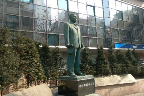 이 건물 왼쪽 화단에서 나석주 의사 동상과 의거 터 표석을 찾을 수 있다.