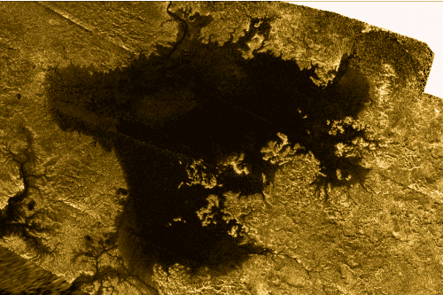 토성의 최대 위성 타이탄의 표면은 탄화수소로 가득차고, 습하다. NASA의 토성 탐사선 카시니가 촬영한 타이탄의 호수 모습 (사진=NASA 홈페이지)