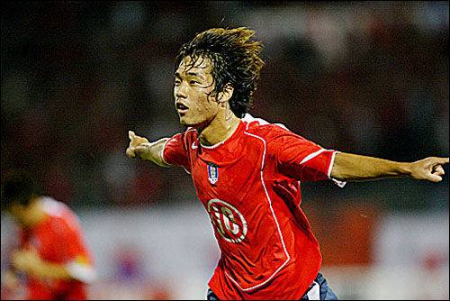 지난 우즈베키스탄과의 경기에서 해트트릭을 기록한 청소년 국가대표의 공격수 박주영 선수. 사진=대한축구협회