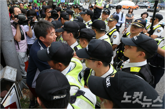 경찰에 사지 들린 채 내쫓겨… 저녁 7시까지 대치 계속돼