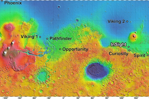 역대 화성탐사선들이 착륙한 지점 (사진=NASA)
