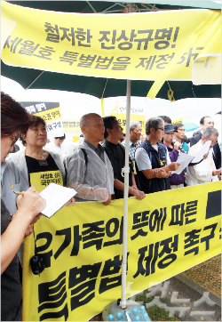 탈출구가 보이지 않는 지금의 모습으로는 정치가 마비될 수밖에 없고, 세월호특별법은 장기 표류할 가능성이 높다. 세월호 정국을 풀 수 있는 해법은 복잡한 정치 방정식이 아니라 유족들의 눈물을 닦아주고 안아주는 가장 근본적인 것에서부터 시작되어야 한다. 그러기 위해서는 대통령이 유족들을 만나 그들의 얘기를 들어주며 신뢰의 물꼬를 터야한다. 특별법은 대통령이 약속한 사안인 만큼 여야 대표들을 만나 해법을 찾아보는 일도 대통령이 해야 할 일이다. 세월호의 침몰을 지켜보면서도 국가는 아무런 역할을 하지 못했다. 너무도 억울하게 자식과 가족을 잃은 유족들의 응어리와 한을 우리 사회가 너무 간과하지 않았는지도 돌아볼 일이다.