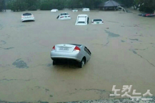 비슷한 시각 북구 덕천동 모 아파트 후문에서는 도로에 범람한 물에 60살 김모 여인 떠내려가면서 숨졌습니다.
