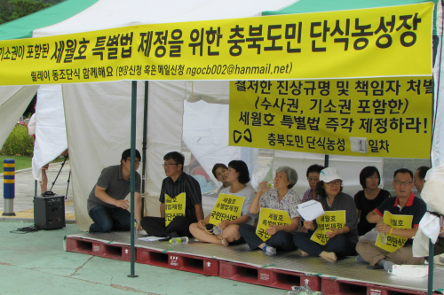 세월호 특별법을 둘러싸고 여야의 극한 대치가 이어지는 가운데, 세월호 유가족이 원하는 특별법 제정을 위한 동조 단식 농성이 충북에서 시작됐다.