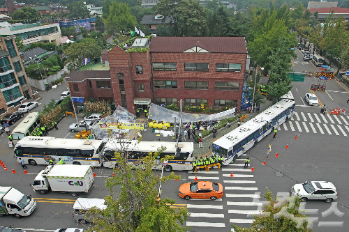 이에 경찰관계자는 "단체 집회자들이 주요 지역(청와대) 방면으로 진출 하지 못하게 하기 위해서 대기중"이라고 해명했다.
