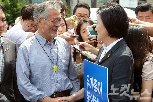 {RELNEWS:right}결과적으로 당과 문 의원은 같은 배에 올라탄 채 유가족들의 입만 쳐다보는 '딱한' 처지에 놓였다. 새누리당과 유가족이 이견을 좁혀야 세월호법이 극적 타결될 수 있고, 그제서야 '유민 아빠'도 단식을 멈출 것이기 때문이다. 박 위원장과 문 의원이 국회가 아닌 광화문에서 손을 맞잡은 이날 새정치연합의 정당 지지도는 창당 이래 가장 낮은 10%대로 떨어졌다.