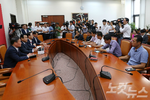 새누리당 원내지도부가 27일 오후 여의도 국회 원내대표실에서 세월호 유가족 대표들과 2차 면담을 가지고 있다. (사진=윤창원 기자)