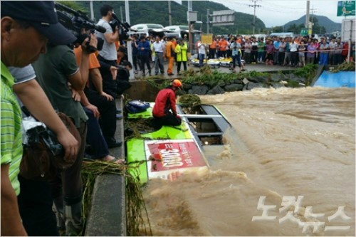 지난 25일 경남 창원시 진동면에서 시내버스가 폭우에 따른 급류에 휘말려 떠내려간 사고 있었지 않습니까? 7명이 희생됐거든요.