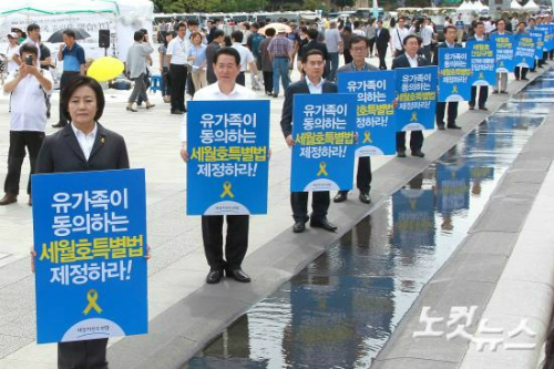 AFP는 '한국 야당 세월호 참사 관련 국회 연좌농성 돌입'이란 제목의 기사에서 세월호 참사와 관련한 야당의 입장을 소개했다.