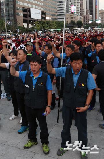 전국민주노동조합총연맹 조합원들이 28일 오후 서울 광화문광장에서 파업 결의대회를 갖고 세월호 특별법 제정을 촉구하고 민영화 저지, 공공기관 가짜 정상화 분쇄 등을 요구하고 있다.