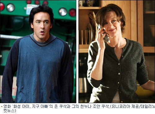 ''화성 아이, 지구 아빠''는 아내를 잃은 SF 소설가 데이빗 고든이 가족들의 만류에도 아내와의 약속을 지키기 위해 6살짜리 사내아이를 입양하면서 벌어지는 드라마. 존 쿠삭은 자신을 화성인이라 주장하는 아이를 키워야 하는 초보아빠로 분했다.