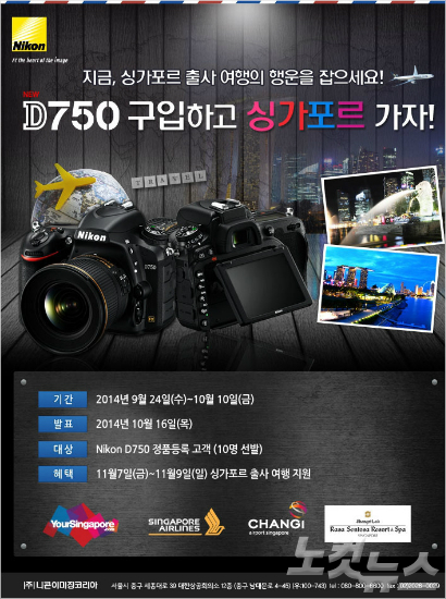 니콘은 동시에 제품 구매 고객을 대상으로 싱가포르 해외 출사를 지원하는 ‘D750 구입하고 싱가포르 가자!’ 이벤트도 진행한다.