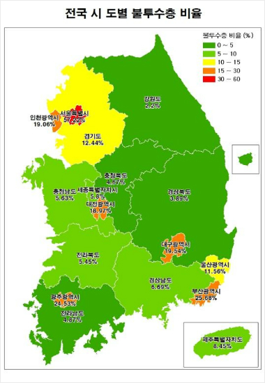 전국 시도의 불투수층 비율 (환경부 제공/노컷뉴스)