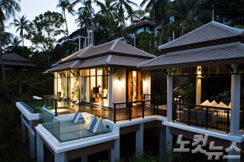 반얀트리 사무이 풀빌라는 바다를 향해 탁 트여 있으면서도 알파벳 U자 형으로 굽어진 해안에 아늑하게 자리하고 있어 마치 반얀트리만의 섬에 들어와 있는 듯한 리조트다. 본디 바위로만 이루어진 해안 위에 모래를 실어날라 전용 비치도 만들어 놓아 부족할 것이 없다.