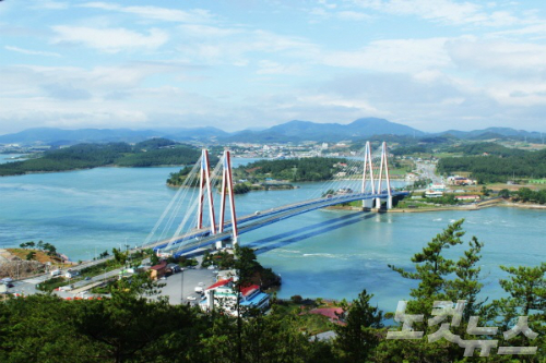 진도타워에서 내려다보는 진도대교 풍경 (사진=윤슬빈 기자)