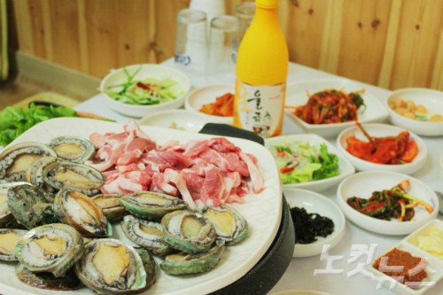 전복구이와 울금 막걸리 (사진=윤슬빈 기자)