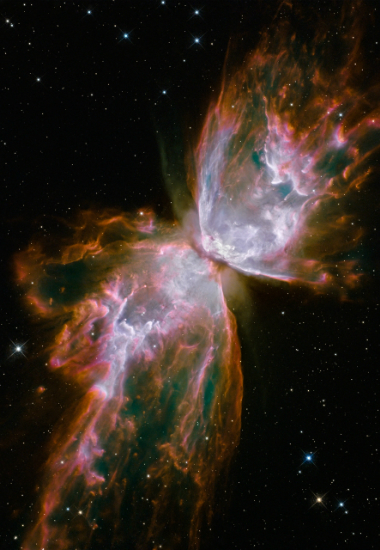 곤충 또는 나비 모양의 이 복잡한 성운은 우리 은하에 있으며 지구로부터 3,800광년 떨어져 있다. 우리 태양 질량의 약 5배인 별이 적색거성으로 되면서 별의 외부 표피들을 우주로 방출하며 매우 뜨거운 상태로 되면서 만들어진 것이다.