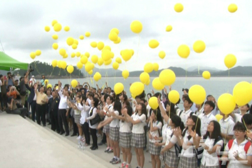 세월호 참사100일 팽목항 노랑풍선날리기. 200여명 시민·유가족·실종자가족·진도고등학교 학생들 (사진=스마트뉴스팀)