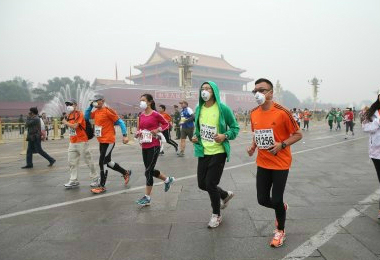 특히 이날 개최된 베이징 국제마라톤대회에서는 일반시민 참가자들은 마스크를 쓴 채 달리는 경우가 많았고 일부 참가자는 방독면을 쓰고 달리는 모습도 연출했다.