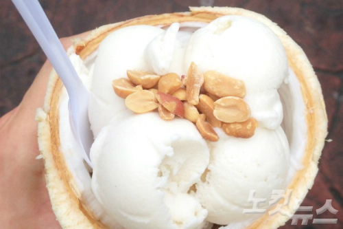 여행자들 사이에서 '보이는 대로 사먹어야 한다'고 말할 정도로 인기가 좋다. 단단한 껍질을 그릇삼아 연유와 잘 익은 코코넛을 섞어 만든 천연 아이스크림이 올려 진다.