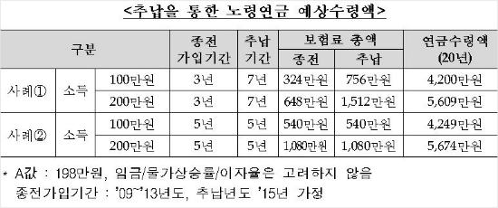 현행법에서 추후 납부는 연금가입자의 실직이나 휴직, 재학 등을 이유로 '납부예외'로 인정받은 기간에 대해서만 허용되는데 비해 조건이 크게 완화된 셈이다.