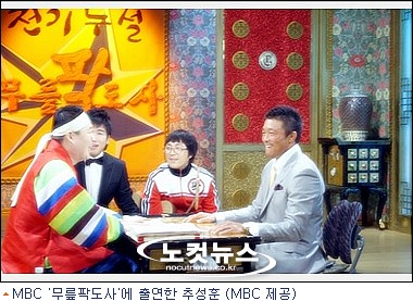 5일 저녁 방송된 MBC '황금어장-무릎팍도사'에서 추 선수는 "당시 코가 부러졌는데 너무 분해서 꿰멘 것을 스스로 풀었다"며 분해했다.