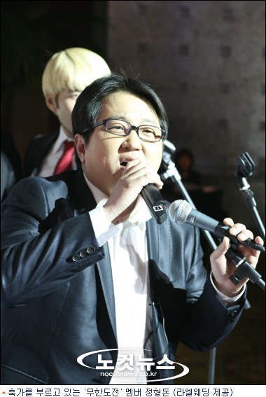 또 입대한 하하를 비롯해 유재석, 정준하, 노홍철, 정형돈 등 '무한도전' 멤버들이 나와 신랑과 신부를 위해 축가를 불렀다.