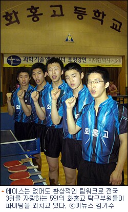 어떤 종목의 스포츠건 에이스가 팀을 이끌어 가기 마련이건만 화홍고 탁구부는 모두 고만고만한 5명의 선수들이 팀을 이끌어 갈 뿐이다. 에이스도 없는 최소 인원의 화홍고 탁구부.