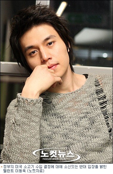 2일 쇠고기 수입재개와 관련한 농림수산식품부-보건복지가족부 장관 합동기자회견을 봤다는 이동욱은 "'광우병 걸린 인간을 수입하는 것이 아니라 축산물을 수입하기 때문에 괜찮다'는 정부 관계자의 얘기에, 이런 나라에 살아야 하나라는 생각이 들었다"며 가시돋힌 표현을 썼다.