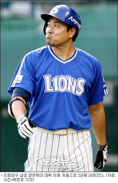 양준혁은 특별히 아픈 것도 아니었지만 리듬을 잃고 특유의 만세타법마저 잃어버리면서 2할이 채 안되는 타율로 '멘도사 라인'에 걸리는 굴욕을 맛봤다. 양준혁은 스프링캠프에서 당한 부상 등으로 2군에서 머물다 1군에 뒤늦게 등록된 경우는 있으나 시즌 중 부진해 2군으로 가기는 이번이 처음이다. 그는 당분간 2군에서 차분히 타격감을 되찾으면서 반격을 준비할 예정이다.[BestNocut_R]