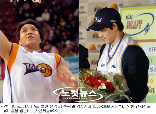 2007-2008시즌을 끝으로 FA 자격을 획득한 윤영필은 원 소속팀 원 소속팀 안양 KT&G가 제시한 연봉 8,000만원보다 1,500만원이 더 많은 연봉 9,500만원을 요구해 협상이 결렬됐고 김지훈은 KT&G가 재계약을 포기했다. 윤영필과 김지훈은 9개 구단 가운데 전자랜드가 유일하게 영입의향서를 제출해 선수 생활을 이어가게 됐다.[BestNocut_R]