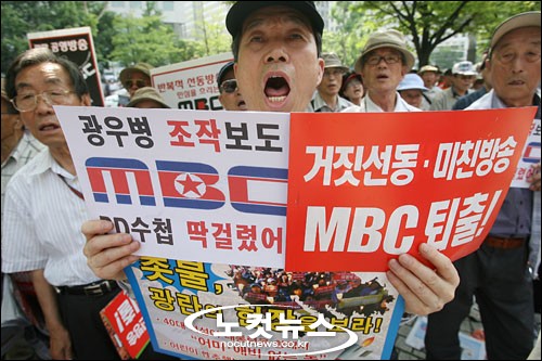 라이트코리아, 국민행동본부 등 보수단체들이 광우병 선동의 책임을 묻겠다며 문화방송 규탄집회를 갖고 있는 가운데 안티MB연대는 인근에서 문화방송 지지집회를 열었다.