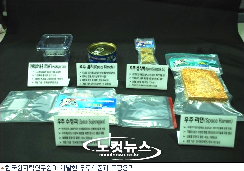 한국원자력 연구원(원장 양명승)은 "김치와 라면, 수정과, 생식 등 우리 전통 먹거리와 기호식품 4종이 러시아연방 국립과학센터 산하 생의학 연구소로부터 우주식품으로 최종 승인을 받았다"고 밝혔다.