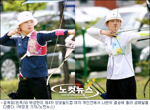 박성현(전북도청)과 윤옥희(예천군청)는 26일(한국시간) 프랑스 보에에서 열린 양궁월드컵 개인 4강에서 각각 자오링과 장주안주안(이상 중국)을 꺾고 결승에 안착했다.