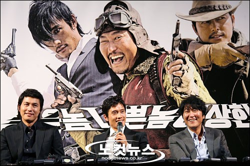 [BestNocut_R]7일 오후 서울 용산 CGV에서 열린 영화 '좋은 놈, 나쁜 놈, 이상한 놈'의 기자간담회에서 배우 이병헌, 송강호, 정우성이 참석해 기자들의 질문에 답하고 있다.