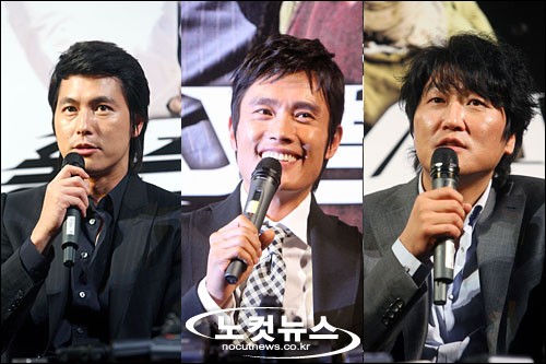 [BestNocut_R]7일 오후 서울 용산 CGV에서 열린 영화 '좋은 놈, 나쁜 놈, 이상한 놈'의 기자간담회에서 배우 이병헌, 송강호, 정우성이 참석해 기자들의 질문에 답하고 있다.