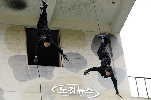 [BestNocut_R]경찰특공대 여자대원들이 25일 오전 서울 방배동 경찰특공대 운동장에서 대테러 진압 시범을 보이고 있다.