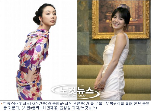 송혜교와 최지우는 각각 KBS 2TV 월화드라마 ‘그들이 사는 세상’(극본 노희경 연출 표민수·김규태)과 SBS 수목드라마 ‘스타의 연인’(극본 오수연 연출 부성출)으로 겨울 안방극장을 뜨겁게 달굴 예정이다.