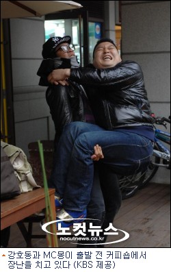 차에서 내린 연기자들은 점심을 굶어 허기진 표정이다. 장난이 심한 MC몽은 벌써 라면을 끓여 먹는다며 설레발이다. 냄비 가득 끓인 라면의 주인공은 과연 누구였을까.