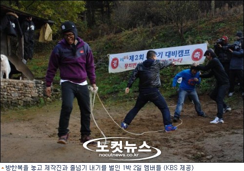 이 날의 복불복 과제는 단체 줄넘기다. 강호동이 잔꾀를 부린다. 단판승부를 보되 연기자들이 이기면 연기자들 뜻대로 하자는 것. 나영석 PD는 순순히 받아들였다. 하지만 결과는 제작진의 승리. 이번에는 강호동을 제외한 김C, 은지원, 이승기, MC몽, 이수근 등 다른 멤버들이 반발한다. “강호동은 우리의 대표가 아니라는 것” 후배들의 집단 반발에 복불복마저 진 강호동은 이 날 유난히 짖어대는 상근이에게 괜한 화풀이다. “조용히 좀 해 싸라, 니 때문에 정신없다 아이가”