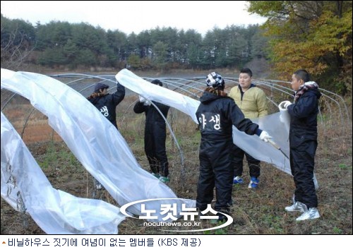 해가 떨어지기 시작하니 추위가 엄습해 왔다. 옷을 네겹이나 껴입은 기자도 발을 동동 구르기 시작했다. 나영석 PD는 “비닐을 쳐도 하우스 안과 밖의 기온 차가 거의 없다”며 걱정스러운 표정이다. 하지만 이명한 PD는 “영하권도 아니고...이정도 추위는 뭐...”라며 대수롭지 않게 여겼다. 감독님...일단 기자들이 얼어 죽겠어요!