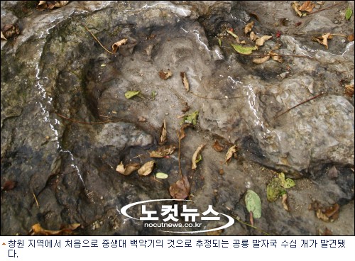 창원 지역에서 처음으로 중생대 백악기의 것으로 추정되는 공룡 발자국 수십 개가 발견됐다.