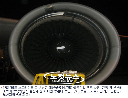 16일 저녁 7시 55분 쯤 김포에서 출발해 김해공항에 도착한 대한항공 항공기에 조류가 충돌해 엔진이 손상되는 이른바 '버드 스트라이크'가 발생했다.