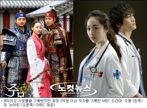 당초 60부작이었던 ‘주몽’은 시청률 상승세에 힘입어 21부를 연장방영해 적자폭도 45억원 가량 늘어난 것으로 드러났다.