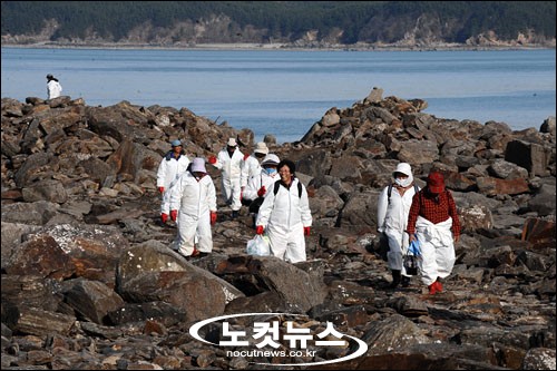 지난해 12월 7일 오전 태안 만리포 북서쪽 10㎞ 해상에서 유조선 허베이스피리트호와 삼성중공업 크레인 부선이 충돌해 유조선에 구멍이 뚫리면서 기름 만 2,000㎘가 바다에 쏟아져 충남 태안일대 해안 70여 km가 검은 죽음의 바다로 변했던 최악의 유류 유출사고가 벌어진지 1년이 되어가지만 해안가 곳곳에서 기름 띠와 웅덩이를 찾아볼 수 있다.