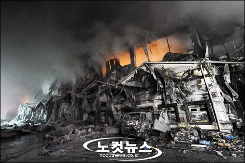 [BestNocut_R]5일 오후 경기도 이천시 서이천 물류센터에서 발생한 화재가 밤에도 진화되지 않은 가운데 현장이 잿더미로 변해있다.